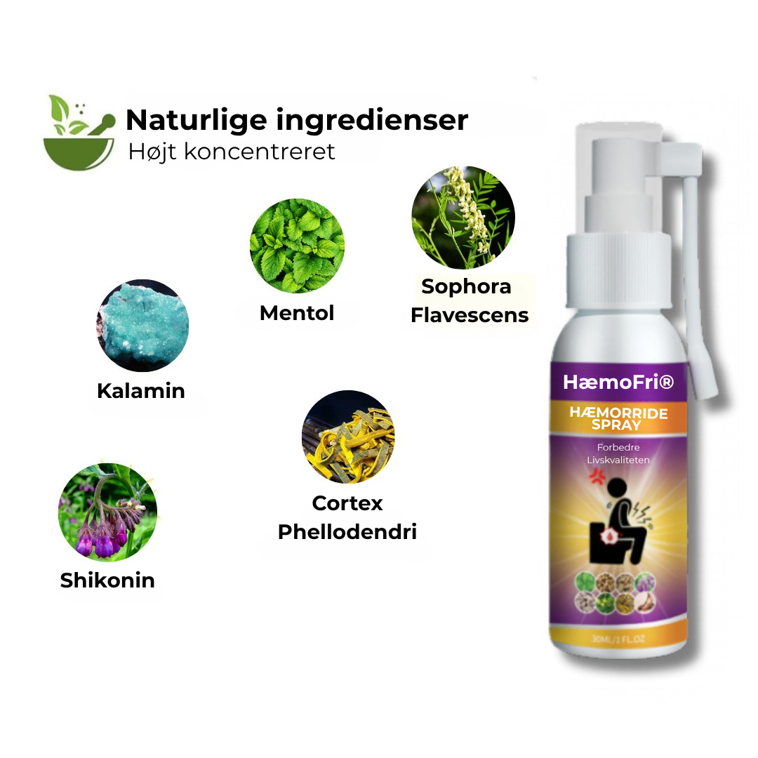 Utvecklad med expertis från världens ledande dermatologer och proktologer erbjuder HæmoFri® ett genombrott inom naturlig behandling av hemorrojder. Med över två decennier av klinisk forskning bakom sig ger denna snabbverkande spray första hjälpen lindring – utan besväret med recept, pinsamma undersökningar eller operationer.