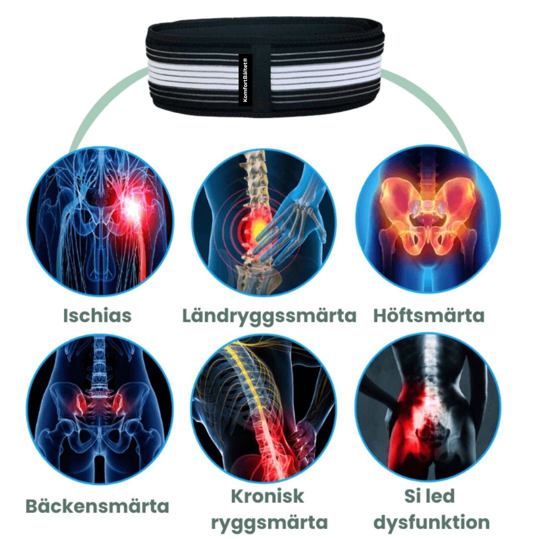 Säg hejdå till ihållande ryggsmärta och hej till en ny, energifylld version av dig själv. Oavsett om du kämpar med ländryggssmärta, ischias eller stelhet efter långa timmar av sittande eller stående – KomfortBältet® är utformat för att återställa balansen, lindra obehag och hjälpa dig att röra dig med självförtroende igen.