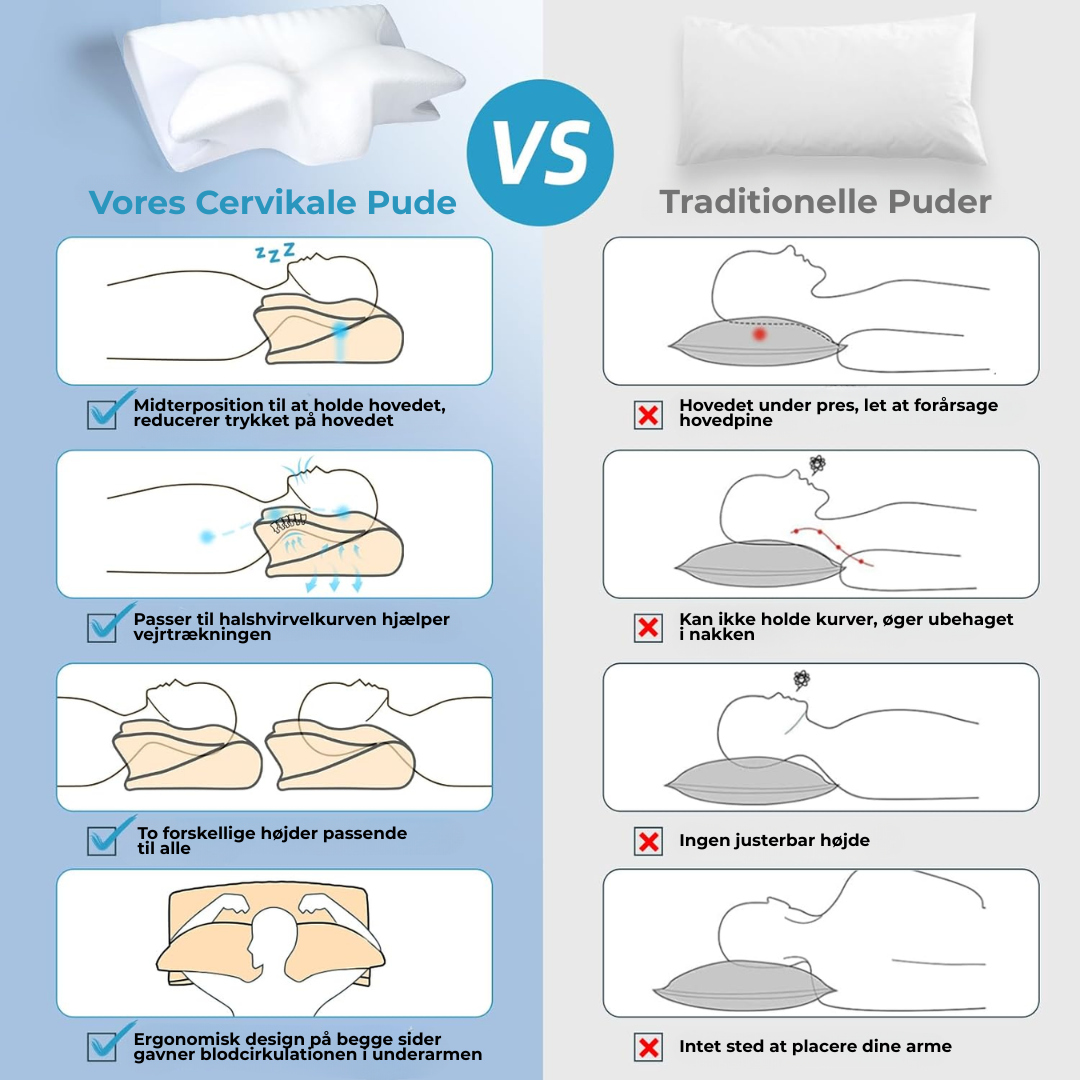 När du sover på en vanlig kudde utan ordentligt stöd, böjer din halskotpelare sig onaturligt. Det lägger press på musklerna och irriterar känsliga nerver.