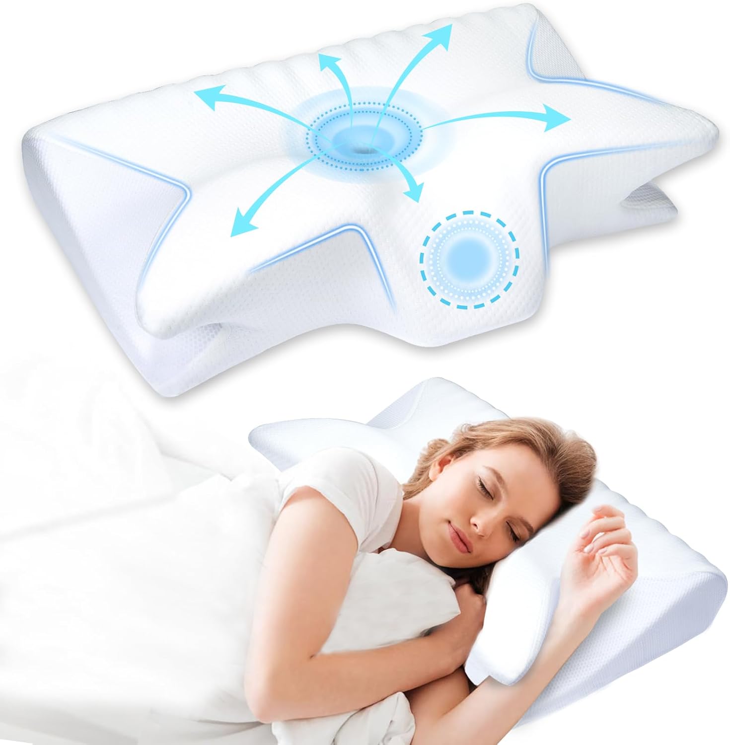 Kudden är tillverkad med andningsbart, temperaturreglerande minnesskum och ett bomull-viscose-överdrag som håller dig sval, torr och bekväm — perfekt för alla som tenderar att bli varma på natten.