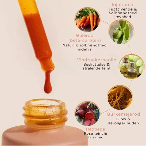 L-Tyrosin – stimulerar hudens egen melaninproduktion för en djupare, naturlig glöd utan solskador.Morotsextrakt – förbättrar hudens fuktighet och förhindrar torrhet eller flagig hud.